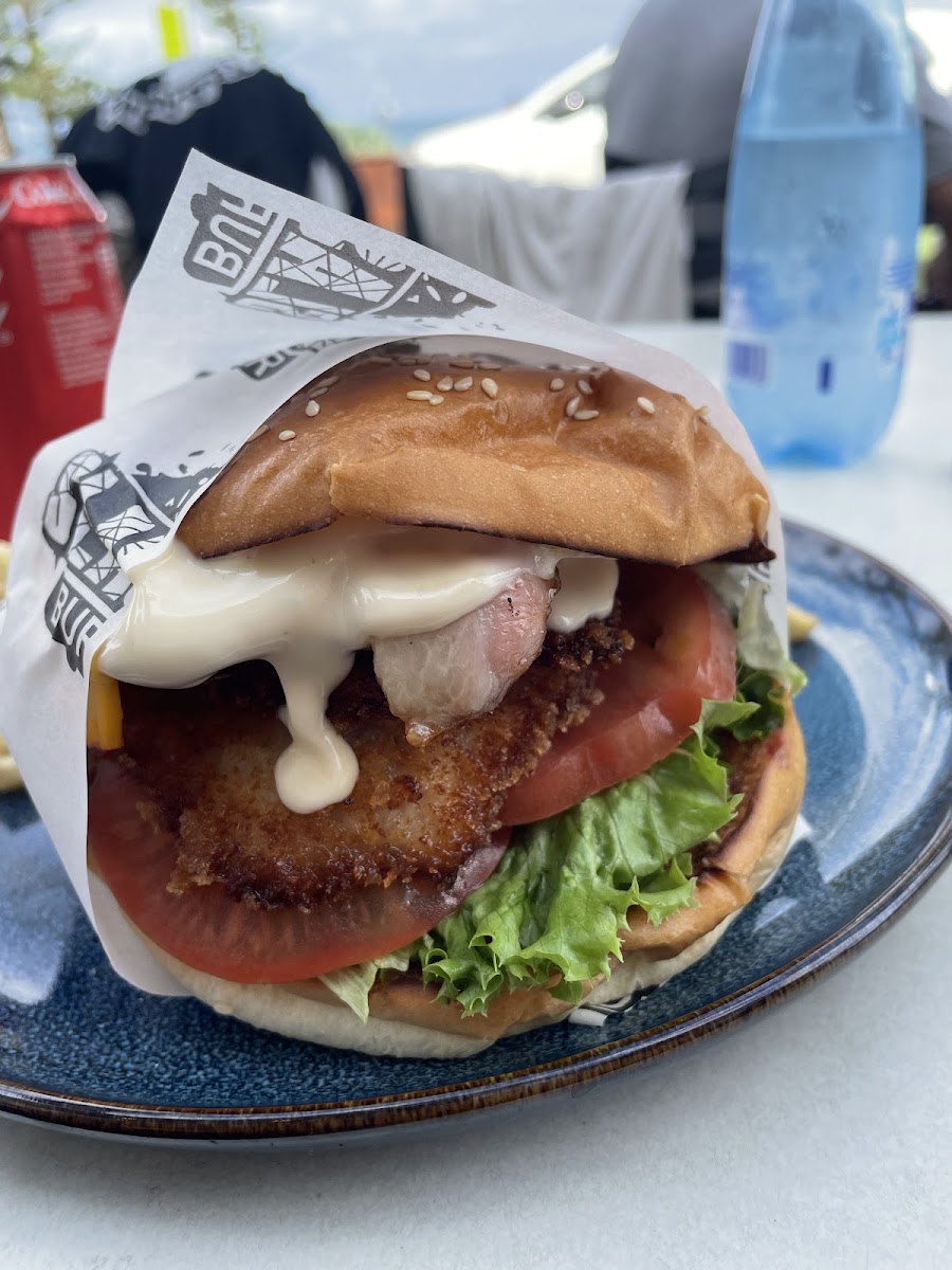 Among the rave reviews, the chicken schnitzel burger stands out, delivering a fresh and delicious bite, especially refreshing after a long stroll along the beach, as noted by Anne-Marie Torrens. The comforting crunch of sweet potato fries, recommended by Timothy Edward Taffe Prado, adds the perfect finishing touch to any meal.